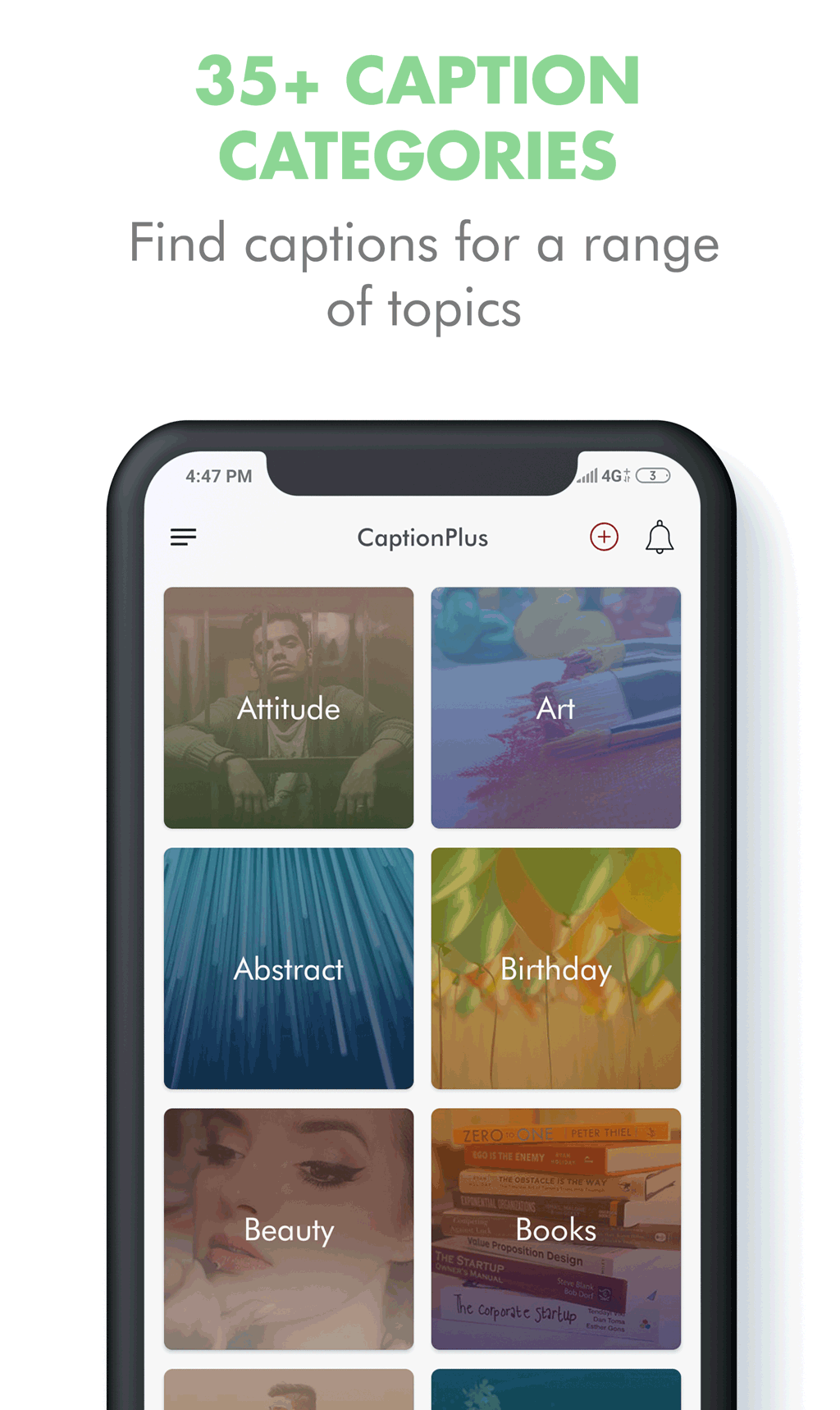 Want more buzz around your photos on Instagram? Caption Plus helps you gain more likes, followers and comments on Instagram by providing the most suitable CAPTIONS and HASHTAGS to complement your photos. With so many filter and categories, you are never short of the original and fresh caption for Instagram & Facebook photos within seconds. All you have to do is open the Caption Plus app and browse your favourite caption for Instagram and rock your next Instagram post. Copy suitable Hashtags to get more organic reach of your Insta Posts.