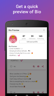 Profile Preview: This feature allows you to check if a bio is made for your profile or not? Just enter your profile ID and our app will fetch it and show you a preview of it.